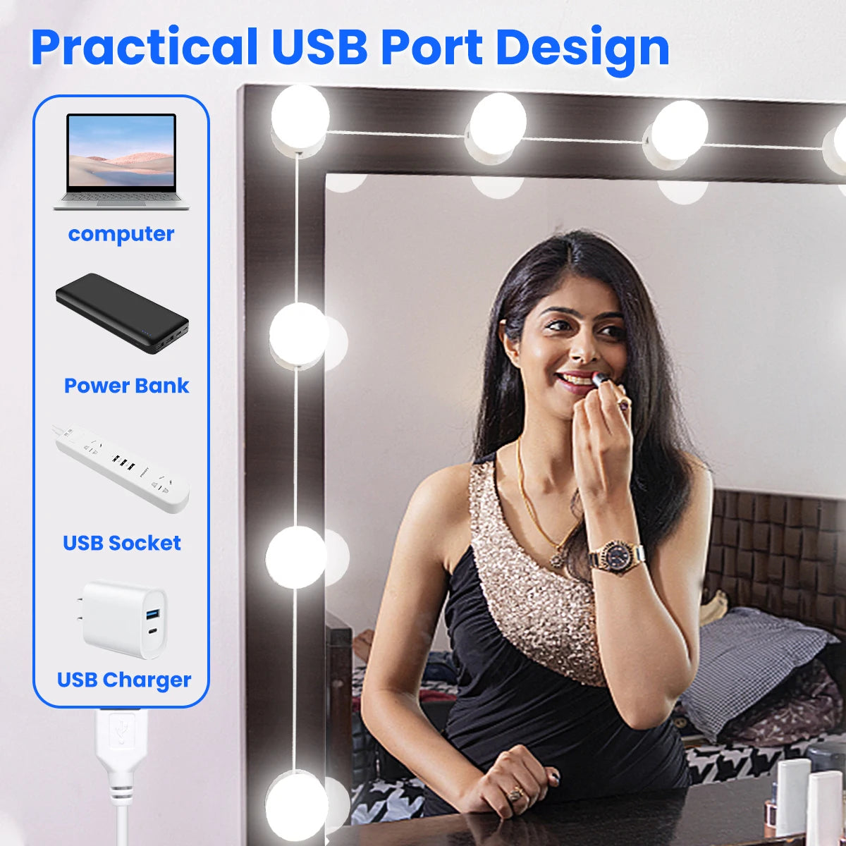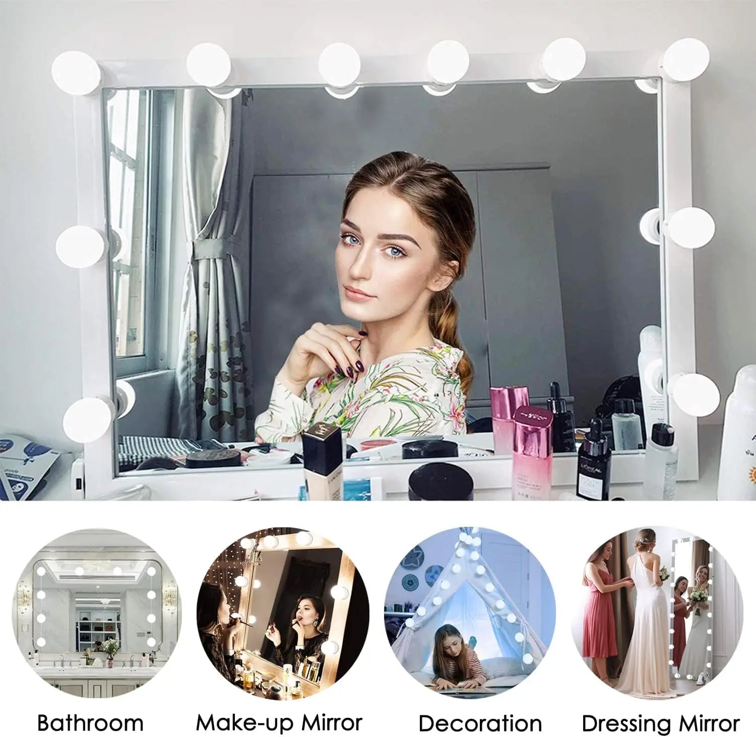 This vanity lights for mirror has 3 colors choices of 3000k/ 4000k/ 6500k, warm/ natural/ daylight white. Meet your different makeup lighting demand. Matched 10 steps dimmer, light from 10% up to 100%, changing casually.